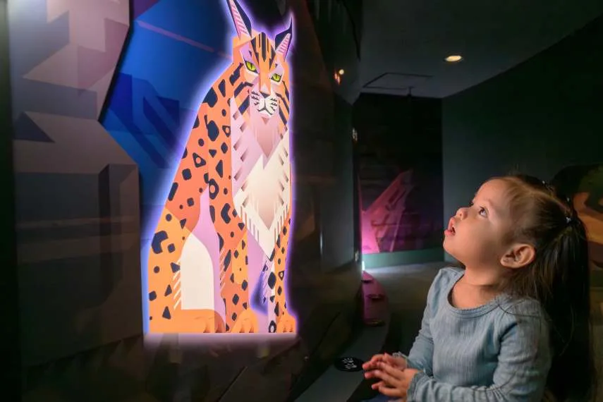The Family Discovery Center is home to The Fab Six, a complimentary set of animal relatives in a tribal system inspired by the Native American clan systems. The Fab Six guides the audience through the rainforest where they can experience animal relatives as translucent creatures of light, engage in activities, cultural stories, and bonus quests related to “The Oklahoma Native American Virtual Scavenger Hunt,” where the guests can pop-up book learn of the richness of diversity in Native American cultures. The visitors embrace this land where eco-justice honors Indigenous peoples’ histories, languages, stories, cultures, traditions, and ecosystems, centering respect, resilience, stewardship, and community. Native people and non-Native people alike find harmony.