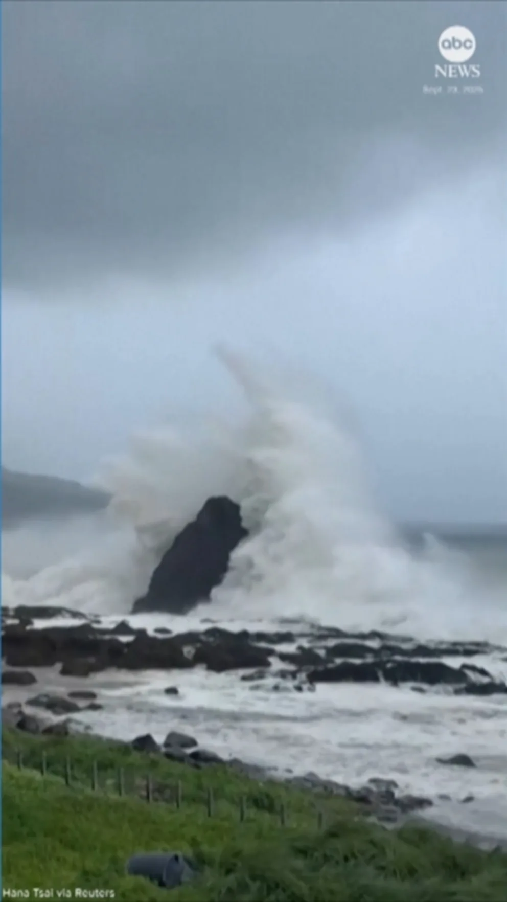 Huge waves from Super Typhoon Ragasa — the world’s most powerful tropical typhoon this year — slam into Taiwan’s remote Orchid Island.