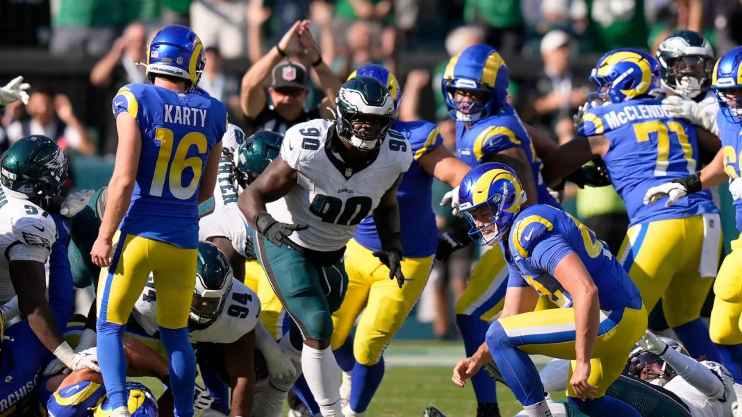 The defining image of Week 3’s wackiness was Philadelphia’s 336-pound Jordan Davis rumbling 61 yards for a touchdown after blocking a 44-yard attempt by the Rams’ Joshua Karty on the final play of the game that would have won it for Los Angeles.