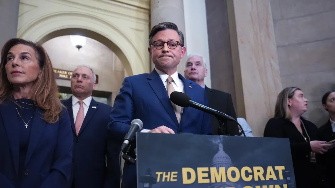 “We want to protect hardworking federal workers,” House Speaker Mike Johnson said Thursday morning, before criticizing his counterparts. “Democrats are the ones who have decided to inflict the pain.”