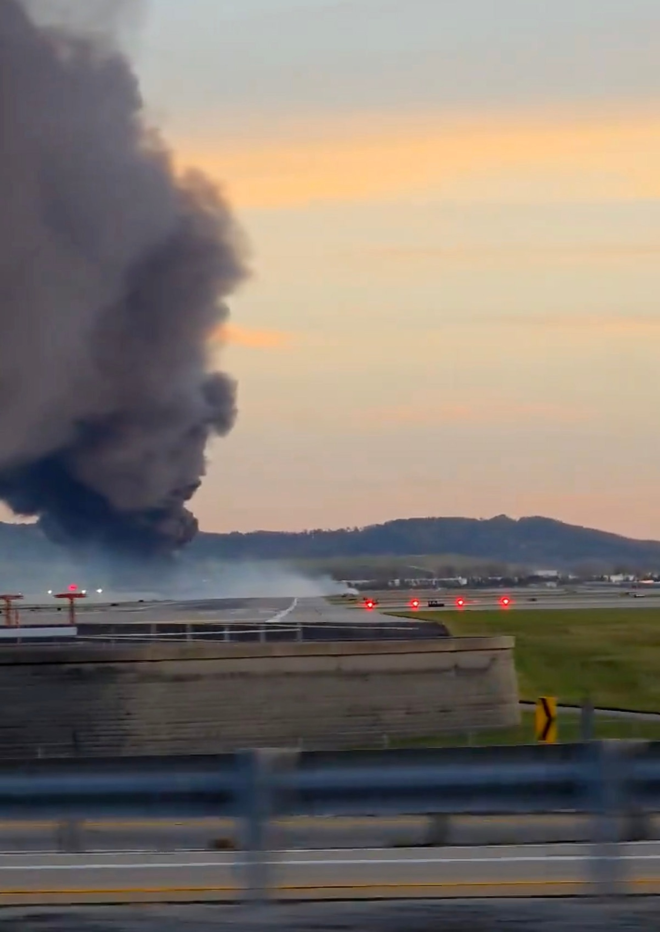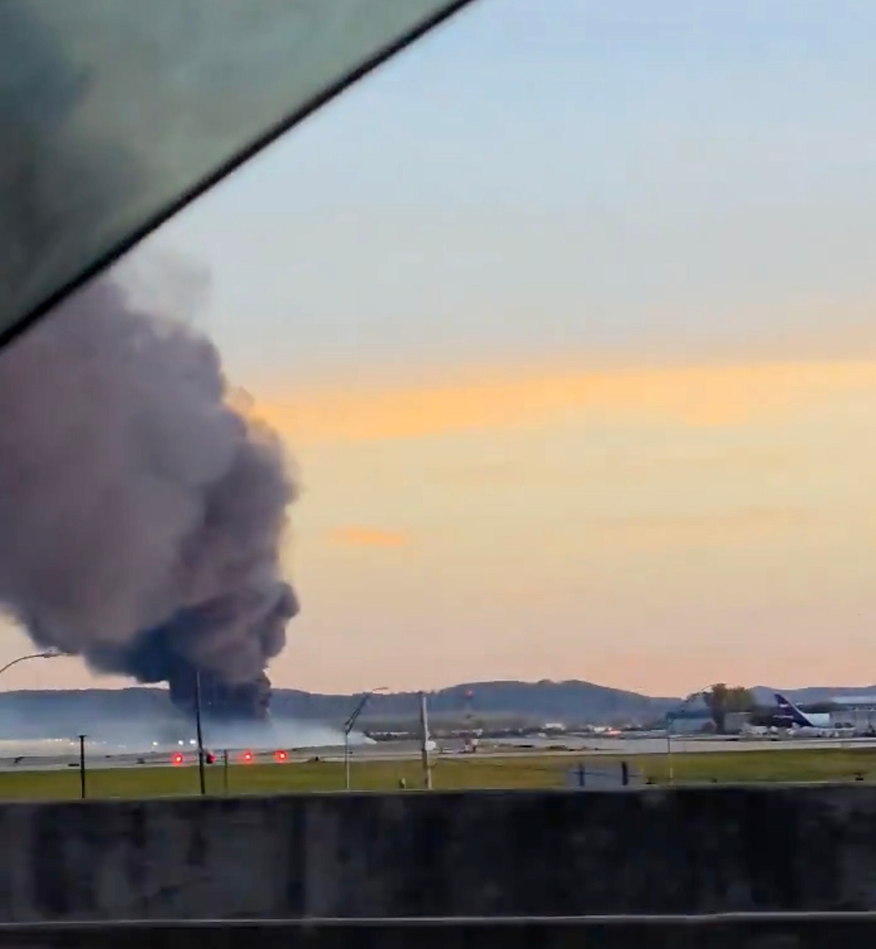 A large plume of smoke could be seen near the airport, which is closed, according to the FAA.