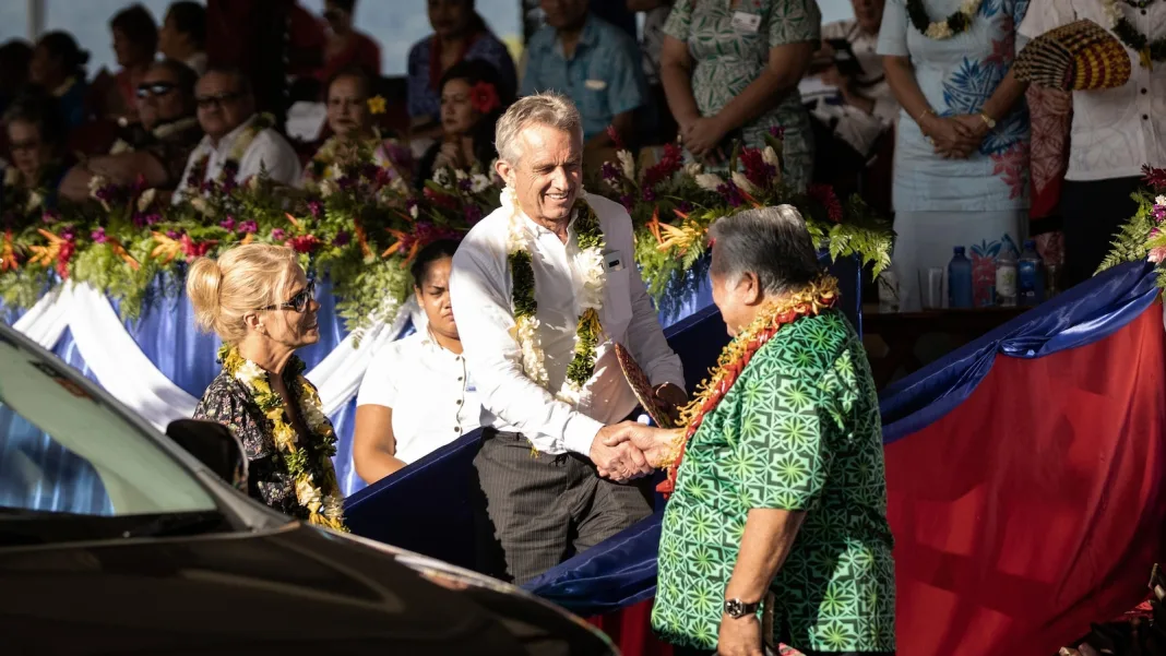 Kennedy ultimately visited in June 2019. While there, he and his wife, actor Cheryl Hines, were photographed greeting the prime minister during an Independence Day celebration. He also met with government health officials as well as a group of figures who have cast doubt on vaccines, including Tamasese.