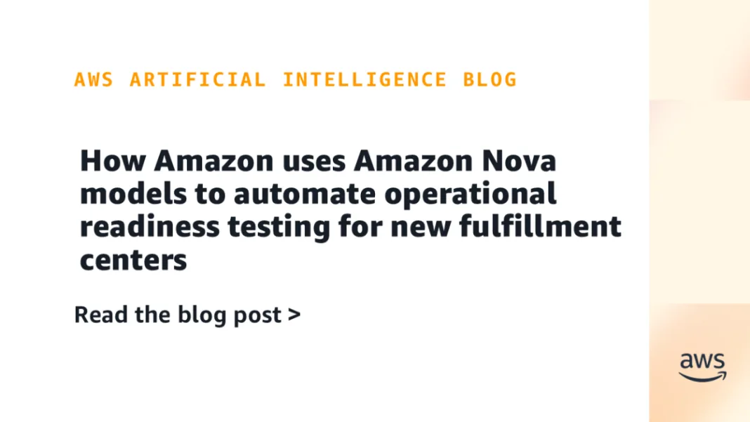Amazon is a global ecommerce and technology company that operates a vast network of fulfillment centers to store, process, and ship products to customers worldwide. The Amazon Global Engineering Services (GES) team is responsible for facilitating operational readiness across the company’s rapidly expanding network of fulfillment centers. When launching new fulfillment centers, Amazon must verify that each facility is properly equipped and ready for operations. This process is called operational readiness testing (ORT) and typically requires 2,000 hours of manual effort per facility to verify over 200,000 components across 10,500 workstations. Using Amazon Nova models, we’ve developed an automated solution that significantly reduces verification time while improving accuracy.