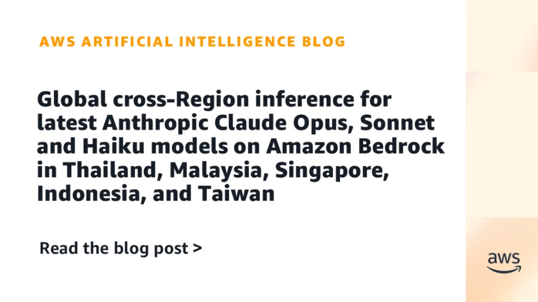 Organizations across in Thailand, Malaysia, Singapore, Indonesia, and Taiwan can now access Anthropic Claude Opus 4.6, Sonnet 4.6, and Claude Haiku 4.5 through Global cross-Region inference (CRIS) on Amazon Bedrock—delivering foundation models through a globally distributed inference architecture designed for scale. Global CRIS offers three key advantages: higher quotas, cost efficiency, and intelligent request routing to inference capacity across AWS commercial Regions for enabling AI use-cases like chatbots, autonomous coding agents, and financial analysis systems for customers.