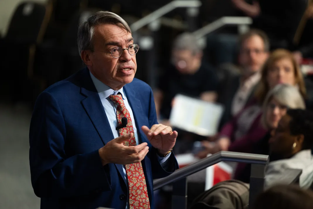 Bertsimas delivered his lecture, titled “Algorithms for Life: AI and Operations Research Transforming Healthcare, Education, and Agriculture,” to an audience of over 300 MIT community members in Huntington Hall (Room 10-250) on campus.