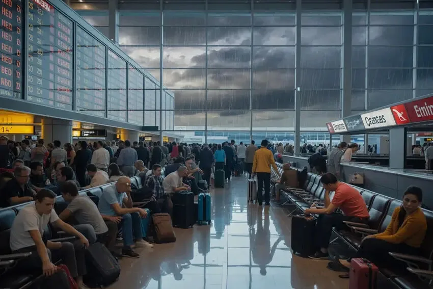 Thousands of passengers have been grounded in Australia as Sydney, Melbourne, Brisbane, and Perth airports face 88 cancellations and 1,230 delays due to Tropical Cyclone Narelle, which has caused severe weather disruptions across domestic and international flights.